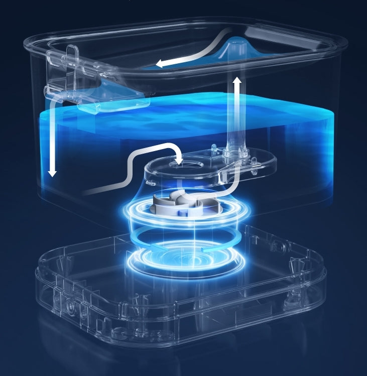 Pametna bežična fontana za vodu predstavlja inovativno rešenje za obezbeđivanje sveže i čiste vode za ljubimce tokom celog dana. Sa kapacitetom od 2,5 l i trostrukim sistemom filtracije, fontana osigurava visok nivo količine, higijene i kvaliteta vode za vašeg ljubimca.